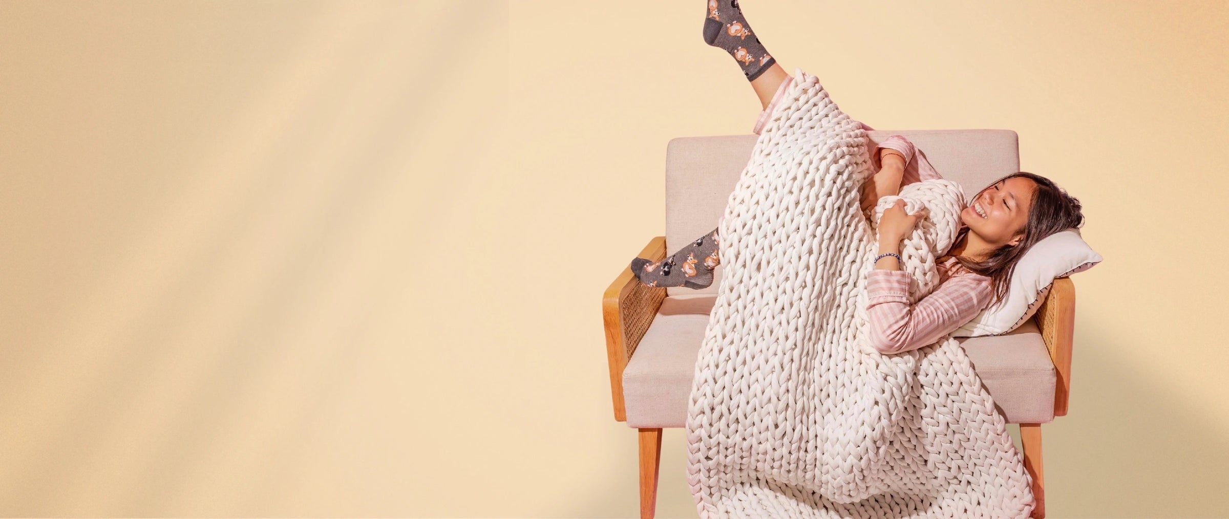 Chaque maille est tressée à la main pendant une journée, pour vous envelopper de douceur.