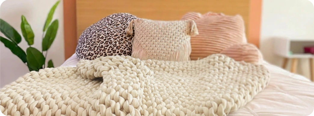Ce qui rend une couverture lestée insupportable n’est pas le poids : c’est l’absence de respiration (matière synthétique qui gratte ou étouffe). Napoon est composée de coton bio à l’intérieur et à l’extérieur. Son design tressé à mailles ouvertes, rend la couverture respirante et utilisable toute l’année. Vous profitez ainsi des bienfaits apaisants même pendant les chaudes nuits d'été.