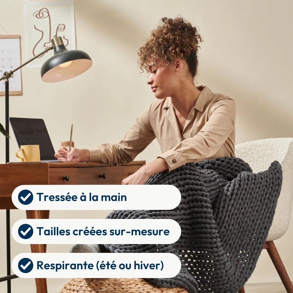 Une couverture lestée est une couverture plus lourde que les couvertures ou plaids conventionnels. Elle exerce une pression douce et uniforme sur votre corps, similaire à un câlin prolongé. Cette pression active votre système parasympathique, réduisant le stress et favorisant un sommeil plus profond, sans médicament. ➞ Zoom sur la couverture lestée